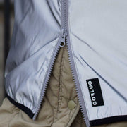 maximise your comfort by adjusting with the two-way zipper. slide the bottom zipper to its centre to create more room around your hips and legs, making pedalling more comfortable.