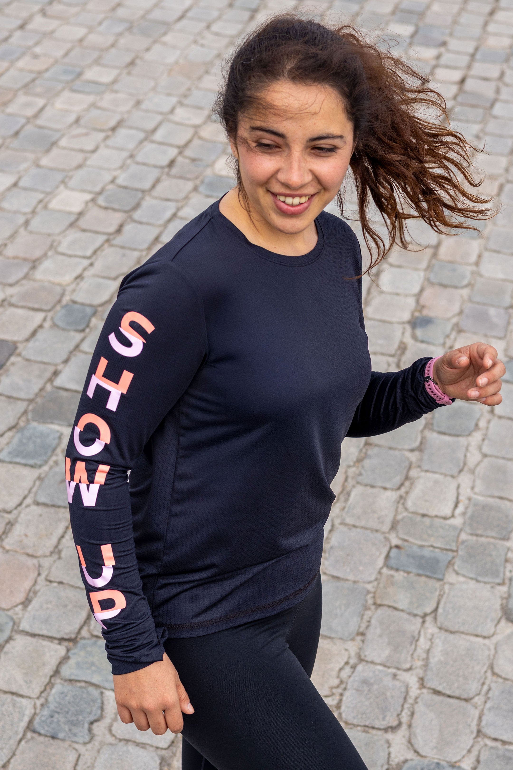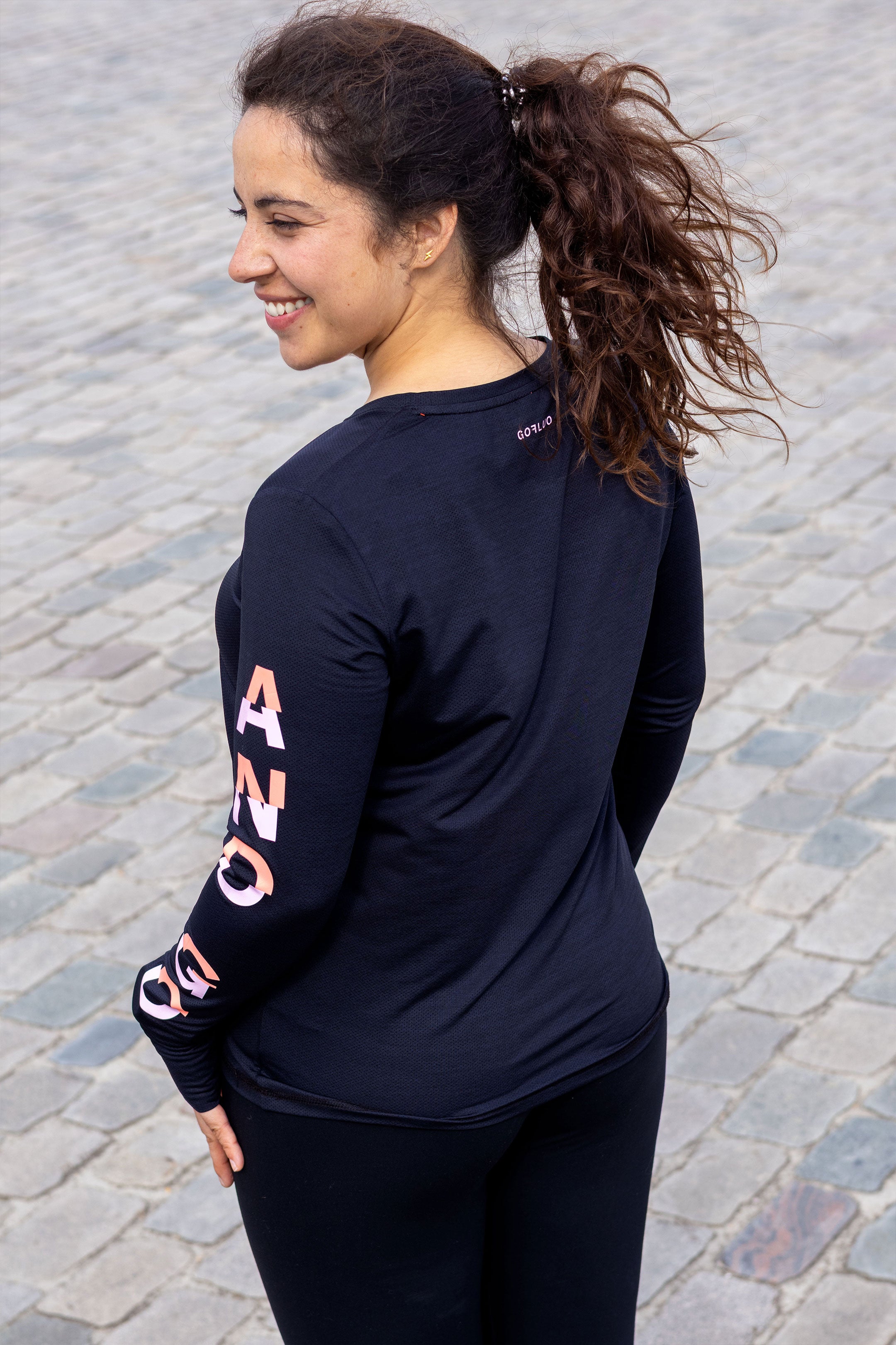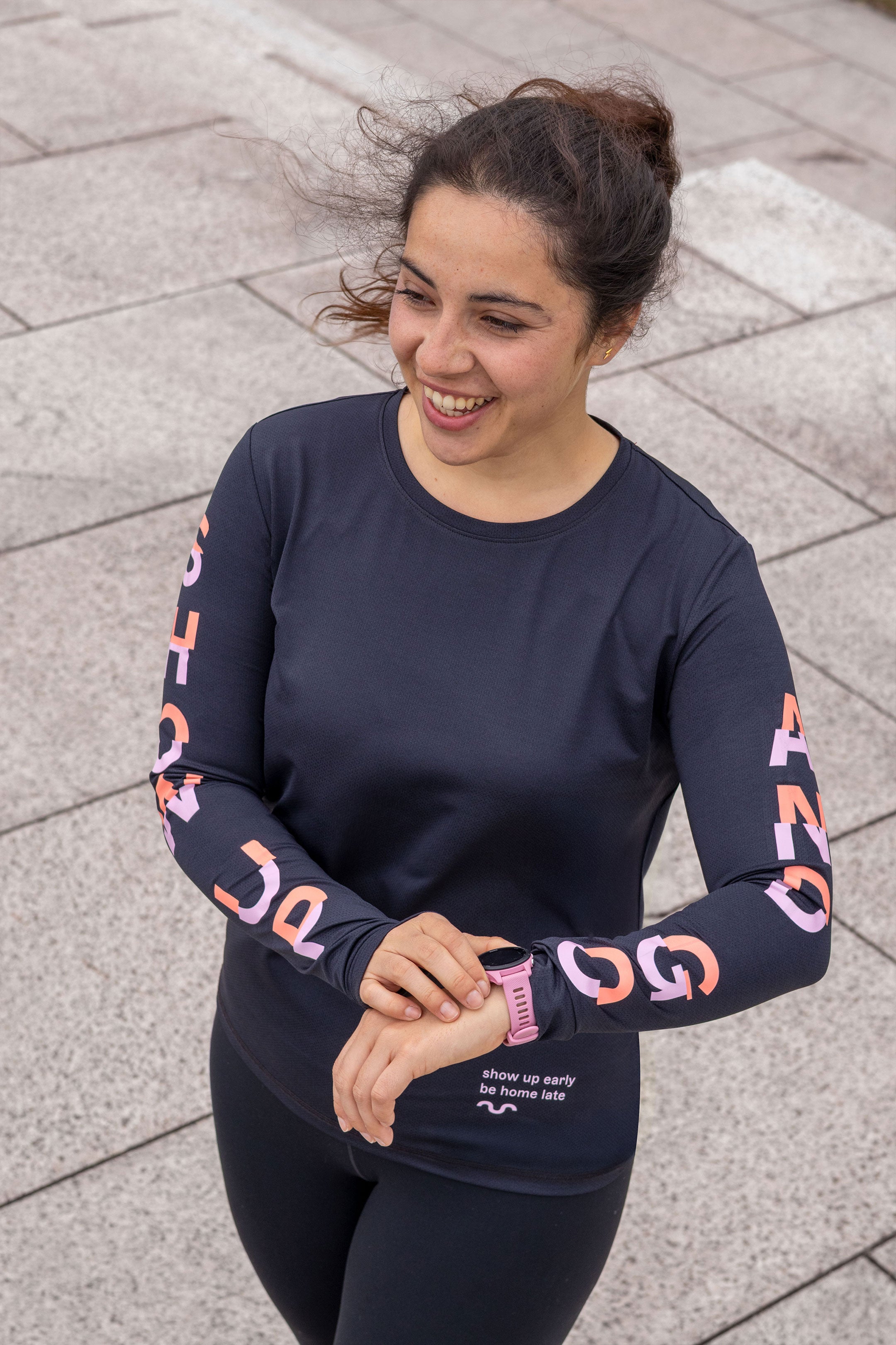 show up and go! this long sleeve shirt is made from a a recycled, ultra-soft, lightweight perforated jersey that keeps you cool, dry, and comfortable while running. it’s breathable, quick-drying, and feels extra soft against the skin.