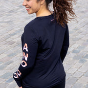 this long sleeve shirt is designed with a female silhoutte in mind. in case you prefer a more unisex shape, please take a look at model ryan.