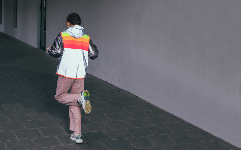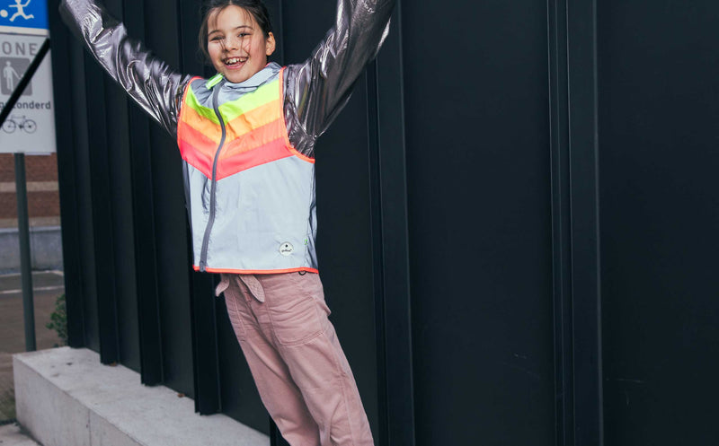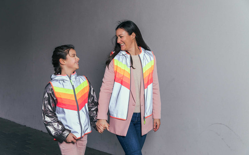 This reflective vest is designed to spread good vibes during the day and make you extra visible at night. The signature GOFLUO rainbow colors and beautiful neon coral hem bring an upbeat splash of color to your day. The vest is fully crafted from a high quality reflective fabric, the kind you want to be seen with.
