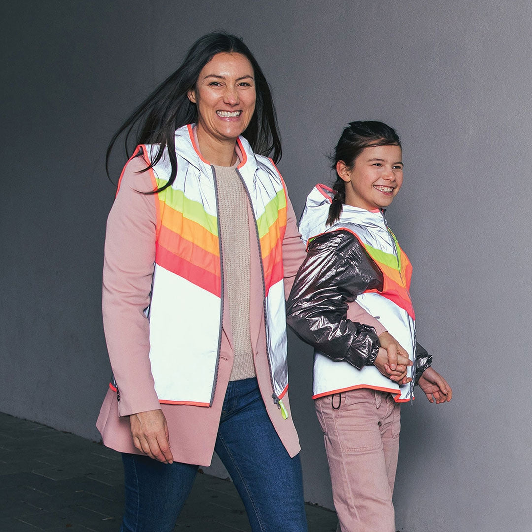 Diese reflektierende Weste wurde entworfen, um tagsüber gute Laune zu verbreiten und Dich nachts besonders sichtbar zu machen. Die charakteristischen Regenbogenfarben von GOFLUO und der auffällige neon-korallfarbene Saum bringen einen fröhlichen Farbtupfer in Deinen Alltag. Die Weste besteht vollständig aus einem hochwertigen reflektierenden Stoff, damit Du bestens gesehen wirst.