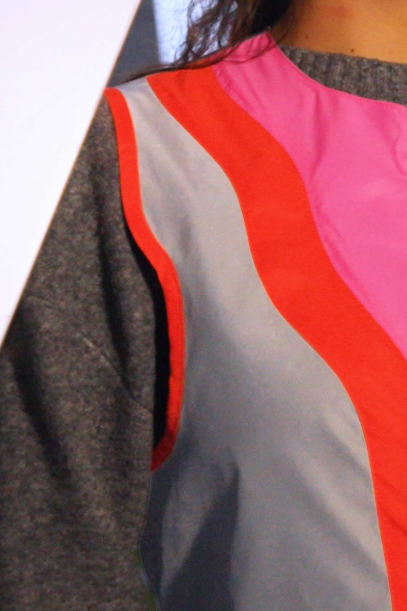 - fluoreszierendes rosa und rotes wellendesign vorne und hinten