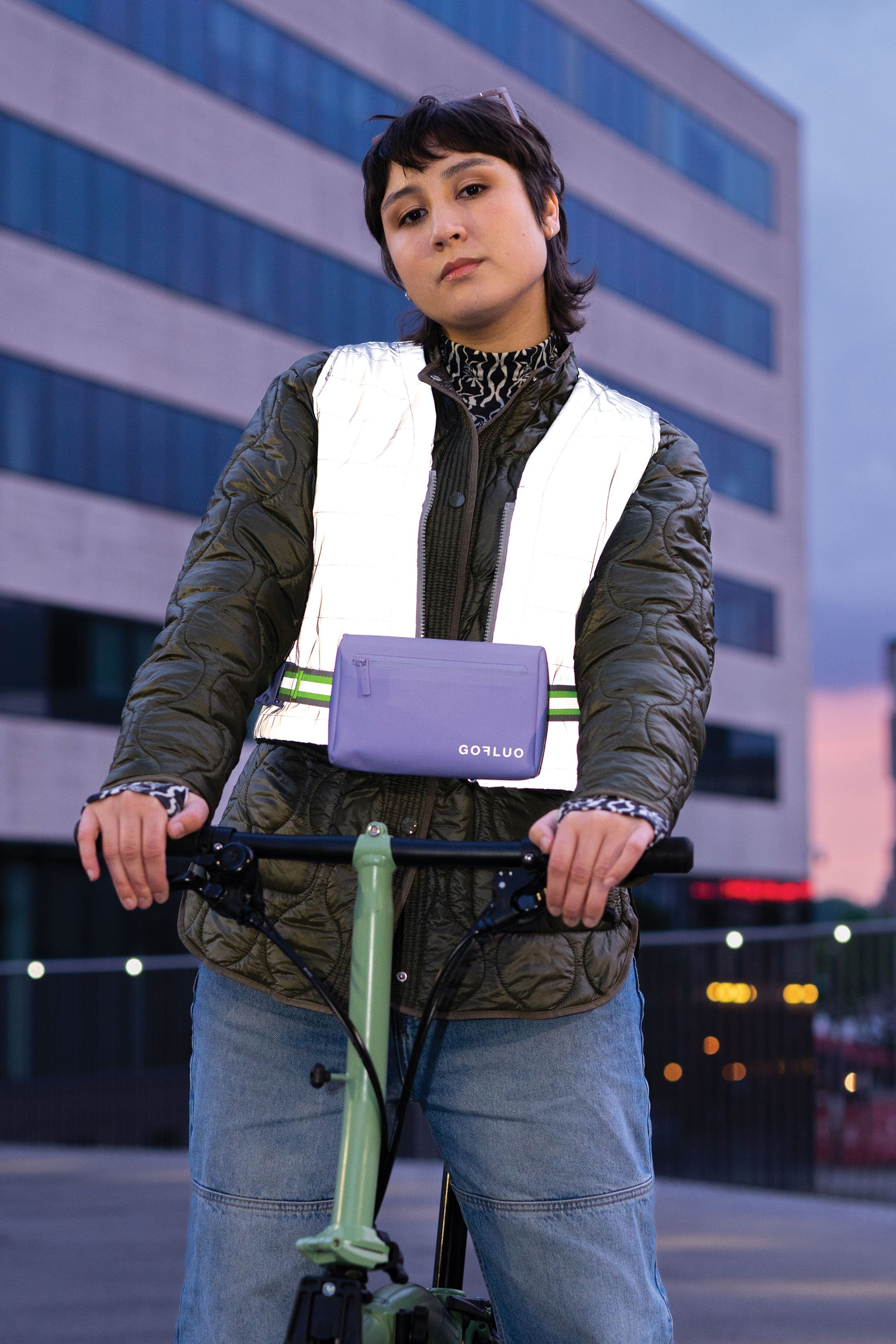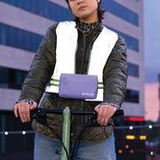 een stijlvol safety statement! deze omkeerbare bodyglower heeft één fluorescerende neon rode zijde & een reflecterende zijde zodat je dag & nacht goed opvalt.