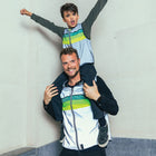 de reflecterende stof maakt jou extra zichtbaar in het donker. overdag fonkel je in de op het noorderlicht geïnspireerde fluokleuren.