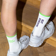 Shine bright from dawn to dusk with two 360° high-vis bands - one bold fluorescent, one fully reflective. Whether you're an early bird or a night owl, the cheerful quotes on the back of these socks will keep you smiling every step of the way!